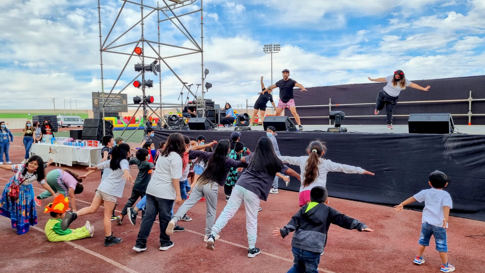 La primera celebración fue en el Jardín Infantil Sol del Desierto, donde 56 menores de tres meses a cuatro años, disfrutaron de diversas sorpresas y regalos junto al perro Chocolo y el payasito Plim Plim. Luego, decenas de niñas y niños llegaron hasta el Estadio Municipal para disfrutar de actividades de zumba, baile infantil y de la presentación de Cachureos, finalizando la jornada en los juegos inflables dispuestos en la cancha del recinto.