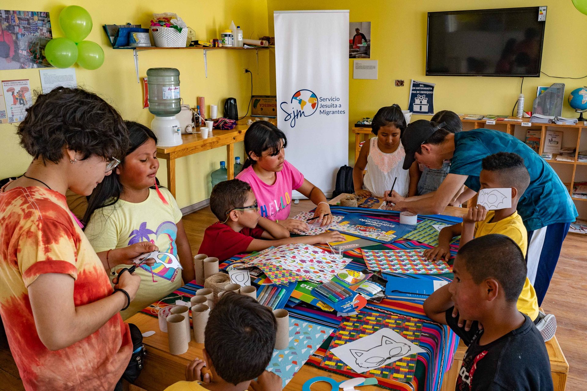 “Este tipo de juegos sirve para que trabajen en equipo y fortalezcan su liderazgo y participación”, explicó la responsable del programa Migración Escuela del SJM, Linda Castro. La profesional, además, comentó que posterior a ese juego para afianzar y estrechar lazos, niños, niñas y adolescentes “tuvieron un espacio para saludarse y luego dar paso a una actividad manual, donde fabricaron máscaras con los colores y diseños que a ellos los representaban. Esto bajo las cuatro temáticas que diseñamos para estas actividades: el fortalecimiento de la identidad como factor protector, la participación, los derechos de niños, niñas y adolescentes y la migración como temática transversal”.