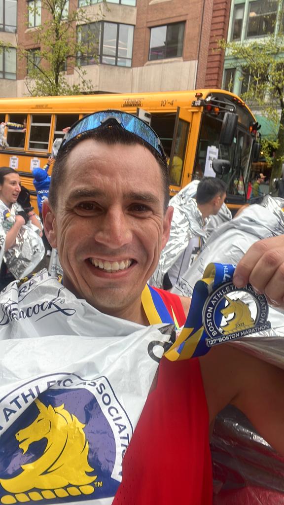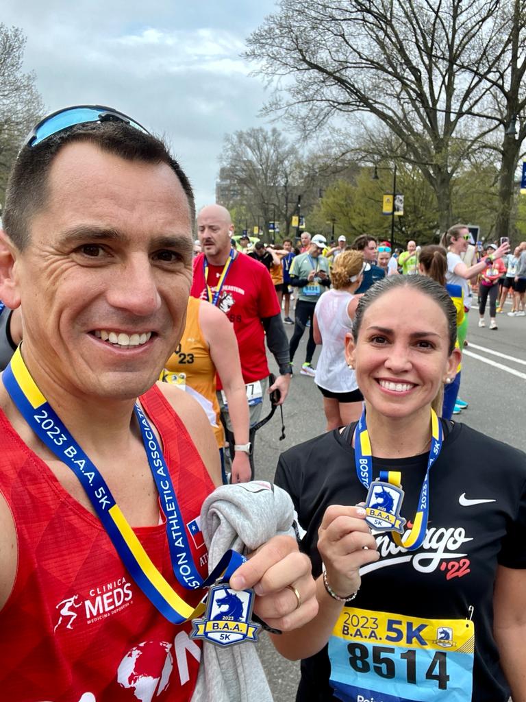 Mi primera carrera la hice en Chicago el año 2019. Luego comenzó la pandemia y modifiqué mi entrenamiento realizando preparación física en la habitación del campamento y aprovechaba las bandas horarias de vida sana que se habilitaron los fines de semana. Luego, a fines de 2021, volvimos a habilitar el gimnasio en Antucoya y comencé a preparar la Maratón de Santiago 2022. Ahí, logré mi mejor tiempo: 3 horas y 5 minutos, con lo que pude clasificar a Boston 2023. En esta maratón hice un tiempo de 3 horas 3 minutos, que es como correr a 14 km/h en la trotadora. Boston es una de las maratones más importante del mundo y muy especial para los que somos maratonistas, porque tienes que clasificar con un tiempo. Así que es una fiesta donde nos encontramos los mejores corredores.