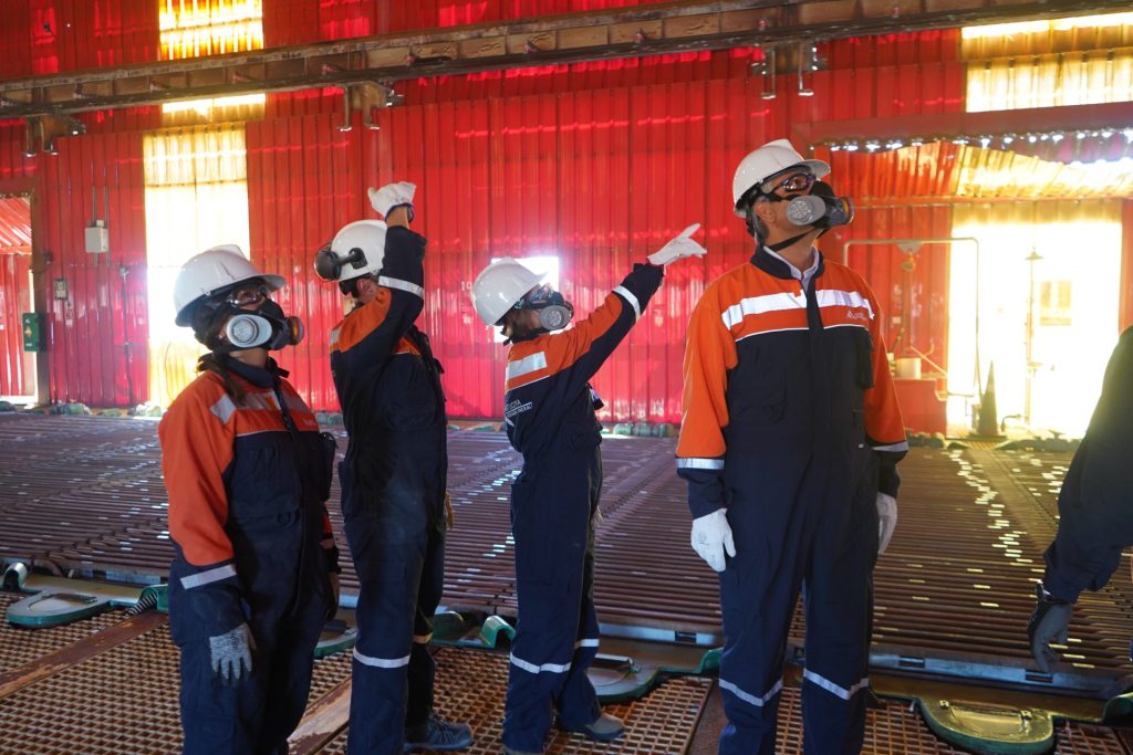 En el recorrido por el Área Húmeda, verificaron la correcta aplicación de la ARTP y el Cambio de Turno Seguro, dos de las cuatro herramientas de la iniciativa de SSO. Las otras dos corresponden a la Confirmación de Rol (el ejecutivo confirma las competencias del rol del supervisor en terreno) y a la Confirmación Integrada de Procesos (la planificación y aplicación del trabajo realizado por el supervisor).