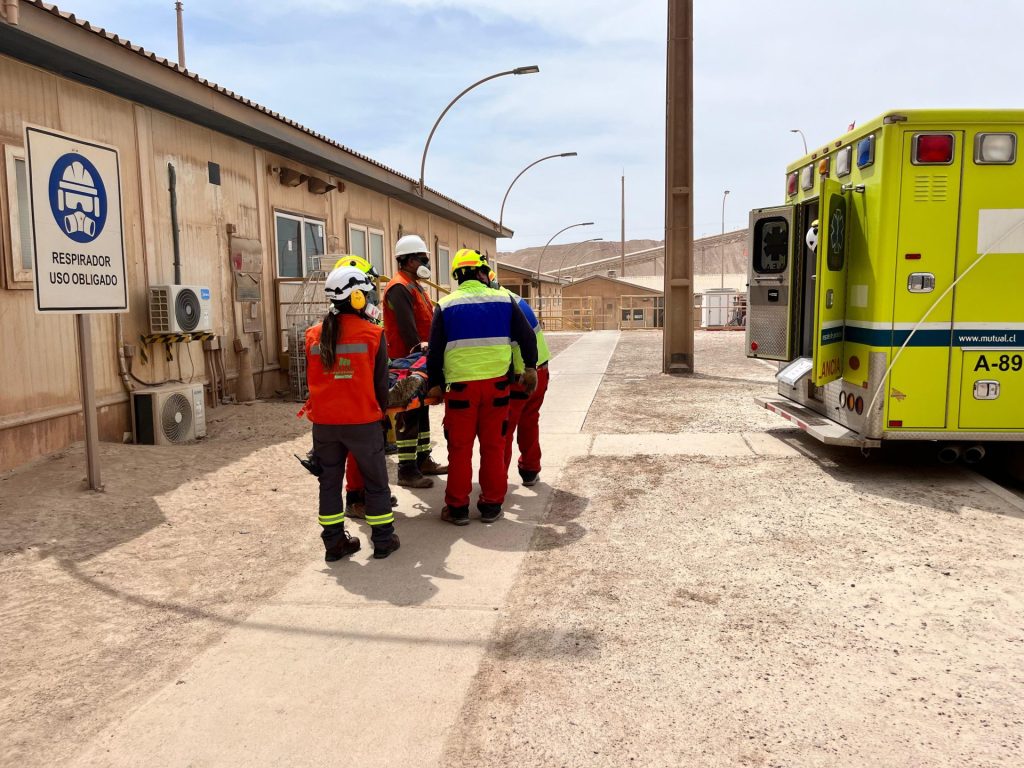 Realizar un simulacro de emergencia para evaluar la capacidad de respuesta ante un escenario crítico. Ese fue el objetivo del ejercicio que se llevó a cabo el pasado jueves 14 de diciembre en Minera Antucoya. En la instancia, simularon la caída de un trabajador que, debido a una supuesta patología médica preexistente, cae desde dos metros de altura mientras realizaba sus labores en el taller de camiones.