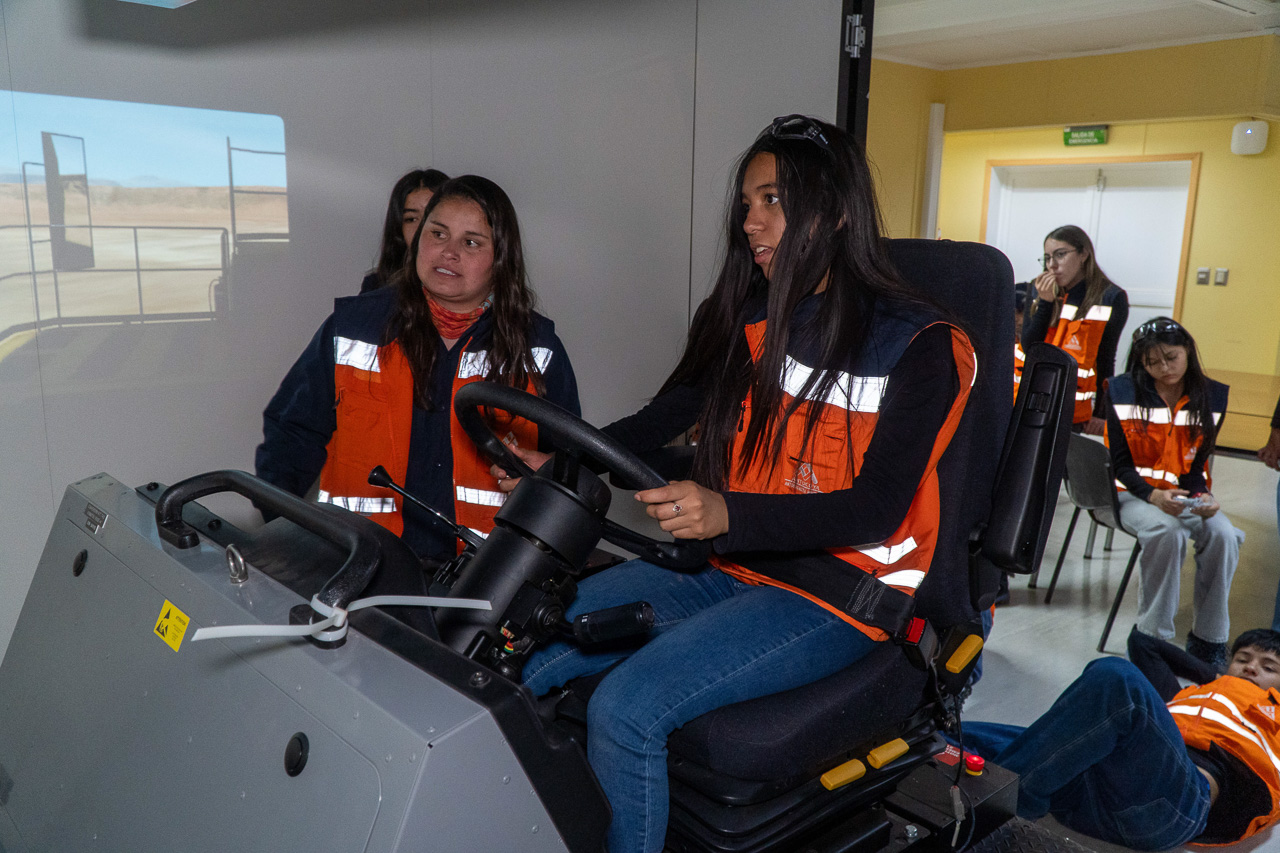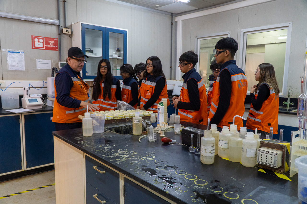 Los alumnos del Liceo TPCH estuvieron en el taller de camiones, el mirador tolva, planta SX, laboratorio químico y simulador.
