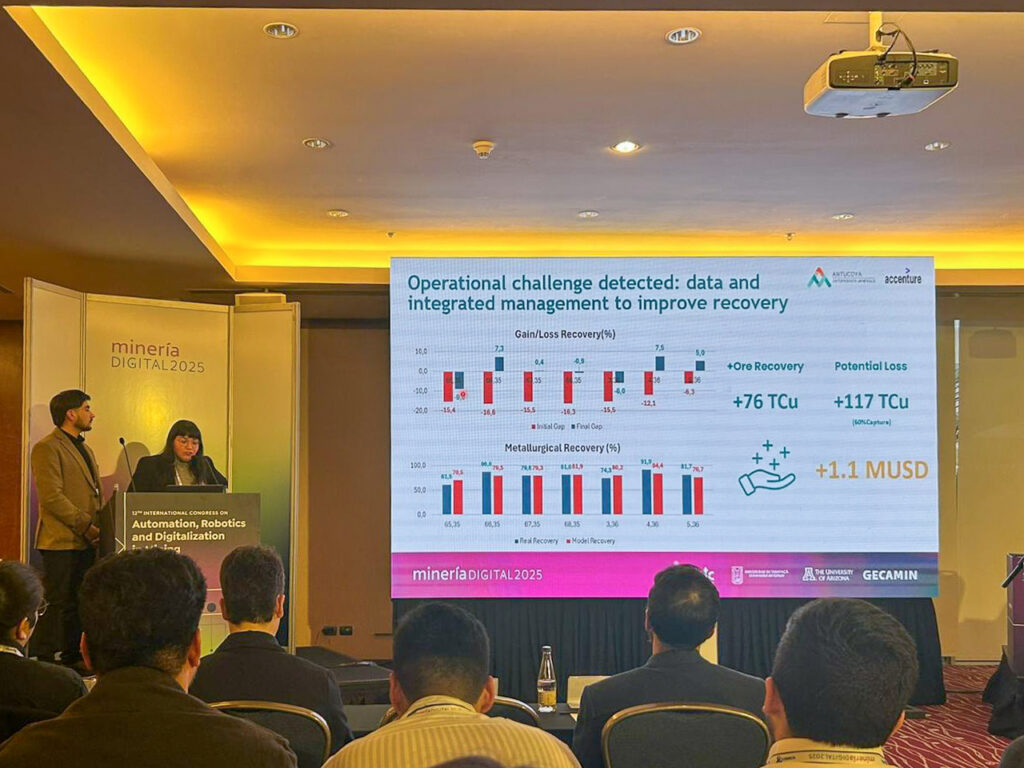 Estos avances, fruto del trabajo colaborativo de múltiples áreas, fueron compartidos con compañías y expertos de todo el mundo en el Congreso Minería Digital 2025, realizado en Santiago. Este evento se ha consolidado como la principal plataforma para mostrar innovaciones y tendencias en la transformación digital minera, donde Montserrat Pineda, ingeniera senior de Analítica Avanzada de, representó a Minera Antucoya.