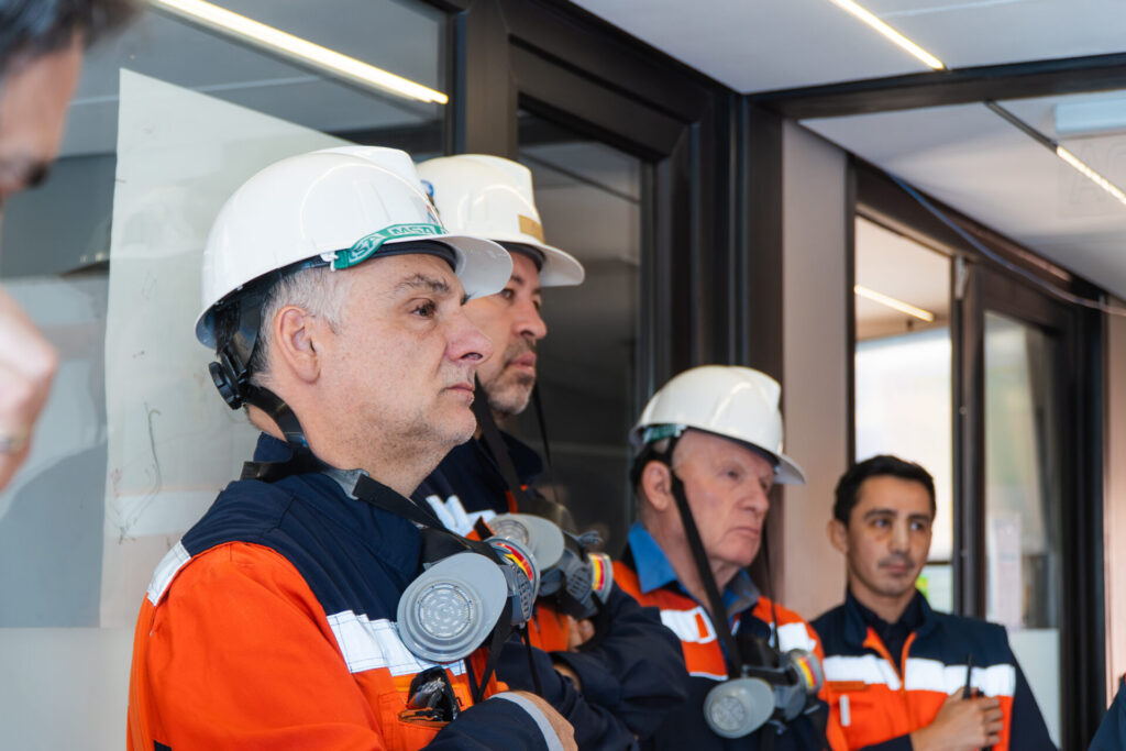La jornada comenzó en el área Mina con la revisión del funcionamiento de las tecnologías de mitigación de efectos de fatiga, somnolencia y distracciones. A su vez, la delegación verificó el Sistema de Alerta de Colisión (CAS) y el control de velocidades. El recorrido continuó en Ripios, donde repasaron estrategias para mantener los controles críticos e innovaciones para la reducción de riesgos, como el uso de cámaras y de botoneras con accesibilidad mejorada.